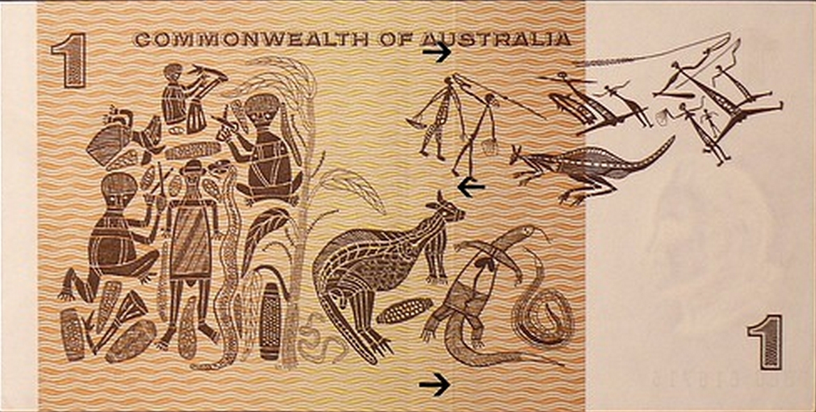 When the one dollar note was held up to the light on the side featuring the aboriginal drawings the central kangaroo facing to the right was either over the line of the thread or behind it. Hence like anything in Australia which has a recognisable variable it was seen as a chance to gamble.