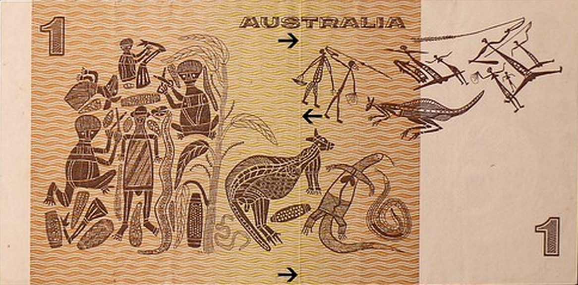 In the example below I have marked the ridge in the note created by the metal thread with black arrows. In this case it passes just forward of the eye of the kangaroo. His nose is just over the line.  When held up to the light it shows as a distinct black line and judging the winner is easy.