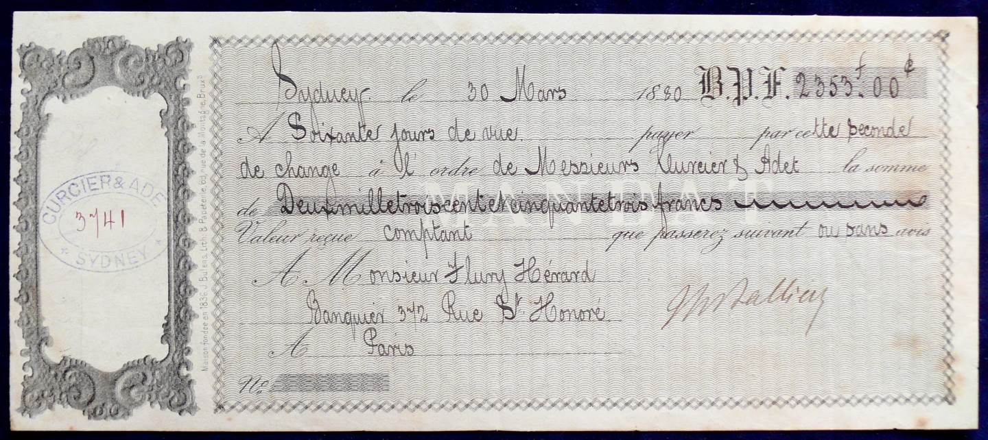 Dated Paris 30th March 1880. It is for the sum of 2,353 francs.