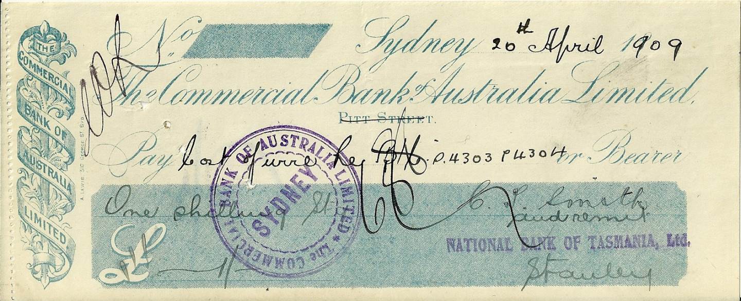 The cheque is for payment for the “Cost of wire ….” to the sum of one shilling Sterling.