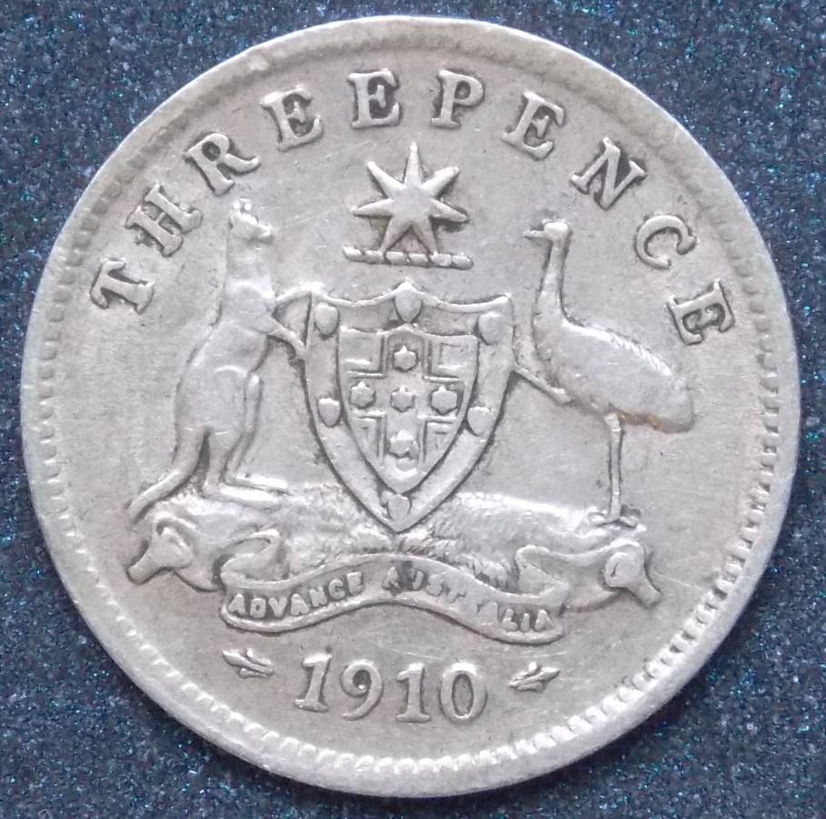 1910 All three pence coins in this period were as follows.