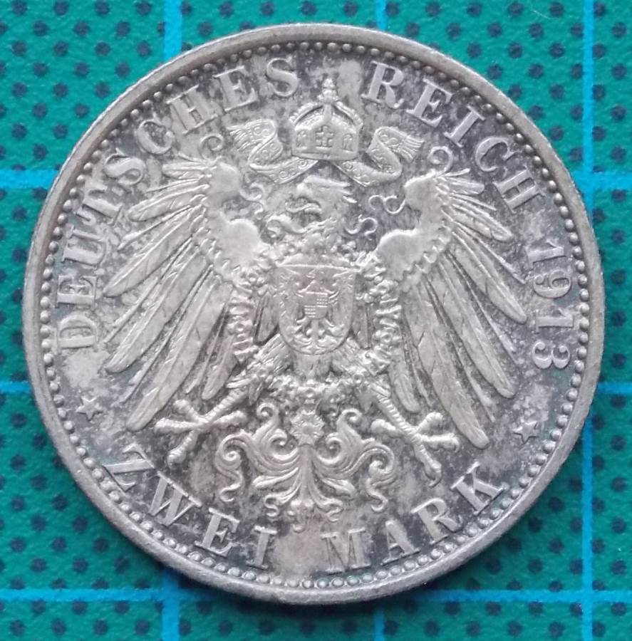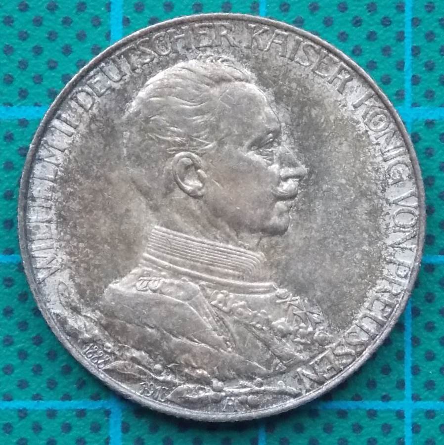 A great piece of numismatic history is presented here in the Two Mark silver coin which was struck to commemorate the 25th Year of Reign by Wilhelm II in 1913.