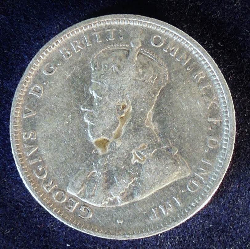 Obverse:Has a portrait of King George V by Sir E.B. Mackennel