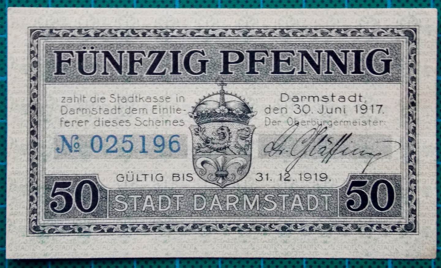Overall in the notgeld banknote segments in the market one of the rarer issues were those from the City of Darmstadt some 35Â kilometers south of Frankfurt am Main.