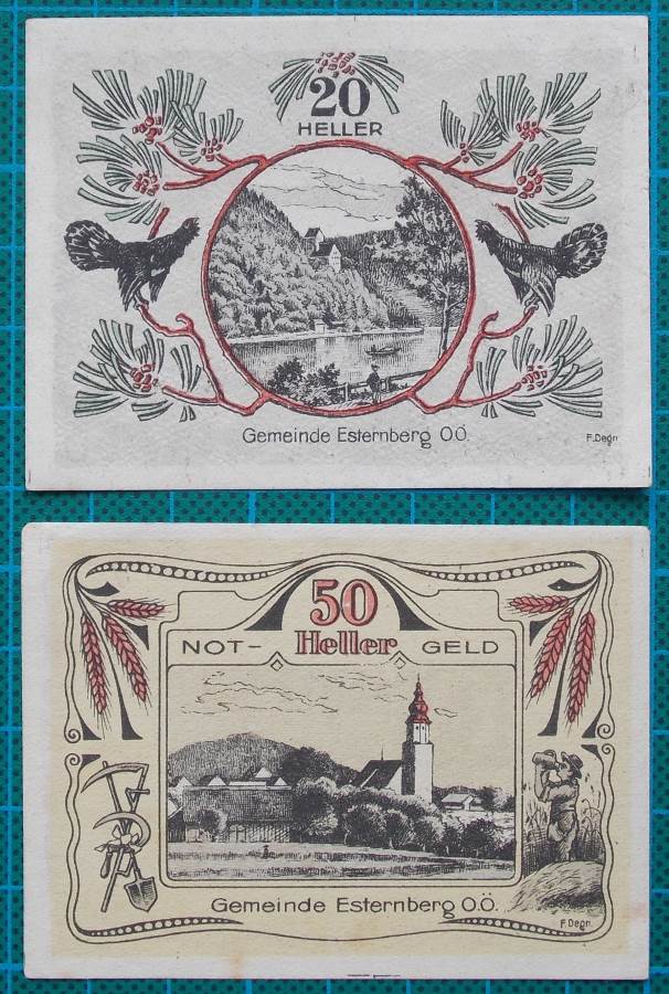 The 20 and 50 Heller notes are a currency denomination that is equal to half a pfennig.