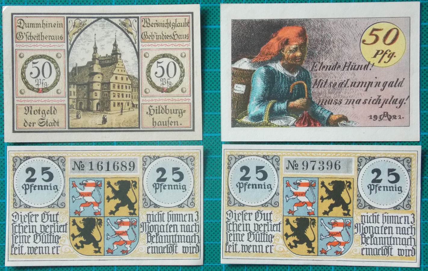 Here is a delightful set of notgeld banknotes from Hildburghausen issued in 1921.