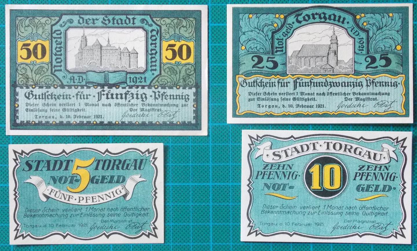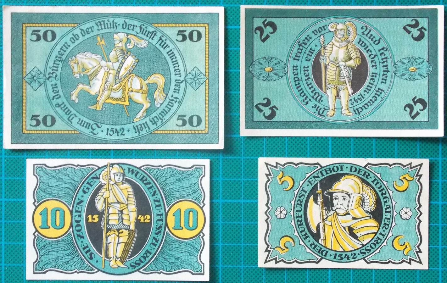 1921 TORGAU NOTGELD 4 BANKNOTE SET / Emergency money / Serienschein