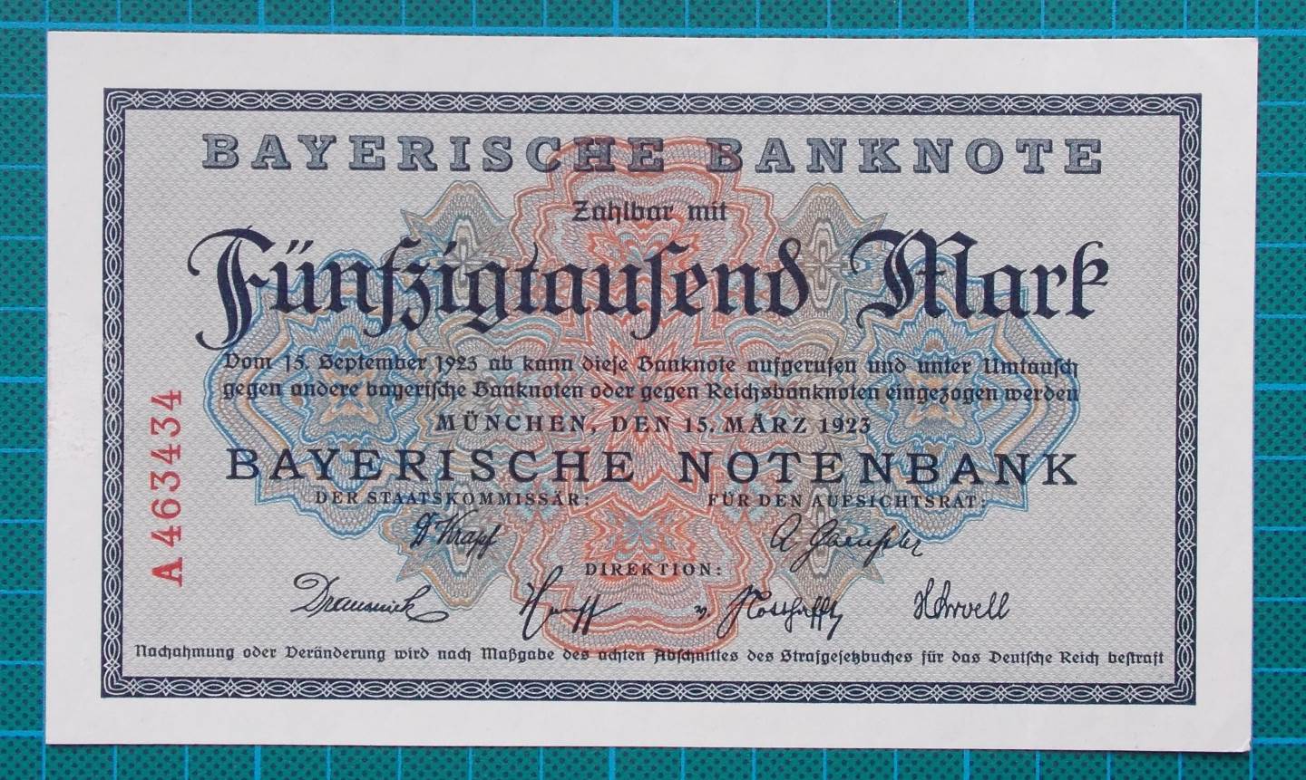 1923 BAYERISCHE BANKNOTE 50,000 MARK A173789