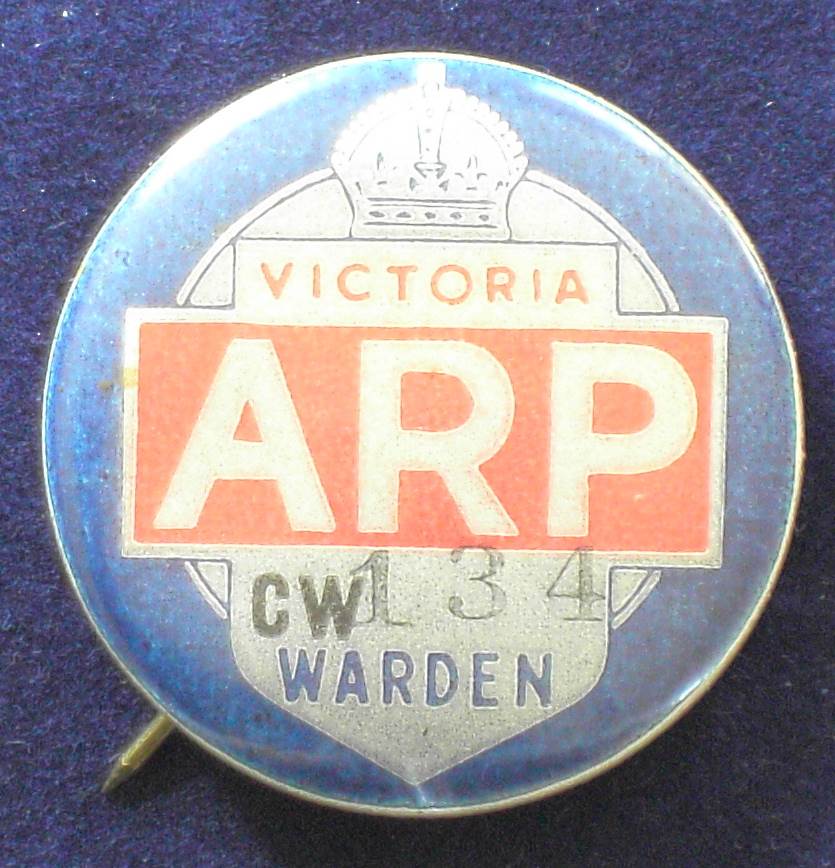 You are purchasing an original Air Raid Precautions pin issued to an Australian Air Raid Warden in Ballarat in 1939.