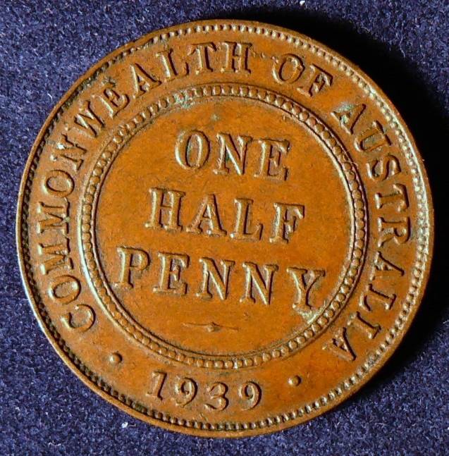 The Australian Halfpenny was a coin used in the Commonwealth of Australia prior to decimalisation. The coin was first minted in 1911 and stopped being minted in 1964, excluding 1937, 1956 – 1958 inclusive. When the Australian currency was decimalised on 14 February 1966 the coin was equal to 5⁄12¢.