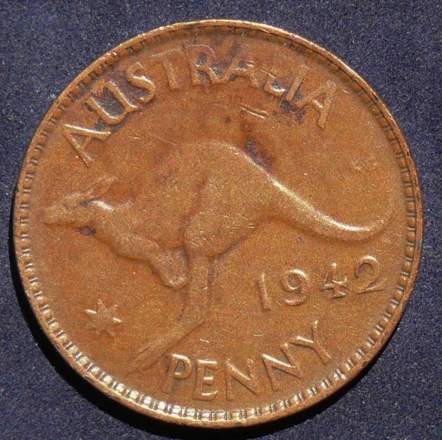 From 1937 to 1964, the Penny had a left facing hopping kangaroo with the word “AUSTRALIA” around the circumference at the top and the word “PENNY” around the circumference at the bottom.