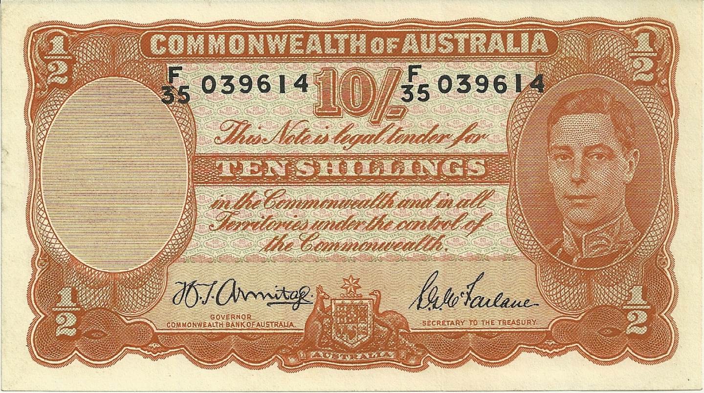 The Ten Shillings bank note was spoken and written as  Ten Shillings, 10/, Ten Bob, Half a Quid, a Teddy (a redesigned smaller version of Australian pre-decimal 10/note which was first issued in 1933) or Half a Fiddly (derived from the one pound slang of Quid – Fid- Fiddly).