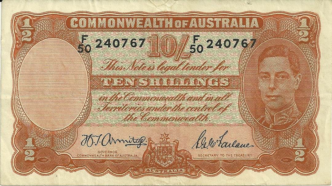The ten bob note as it was known. Average condition but still desirable.