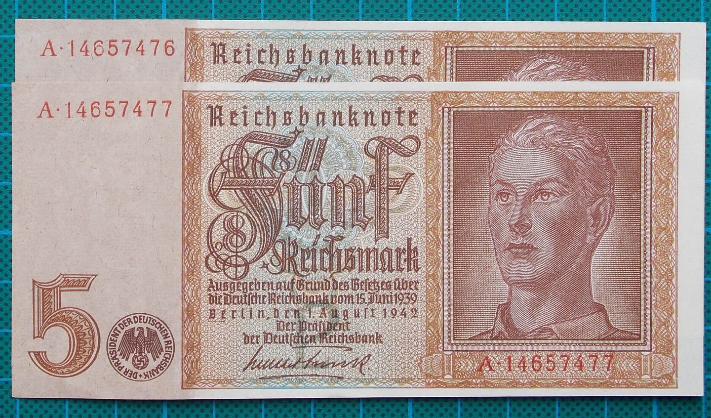 Sequential pairs of bank notes from World War II are quite a collectible commodity. This pair have been preserved in great condition and make for a wonderful addition to any collection of Reichbank notes issued by the Third Reich.