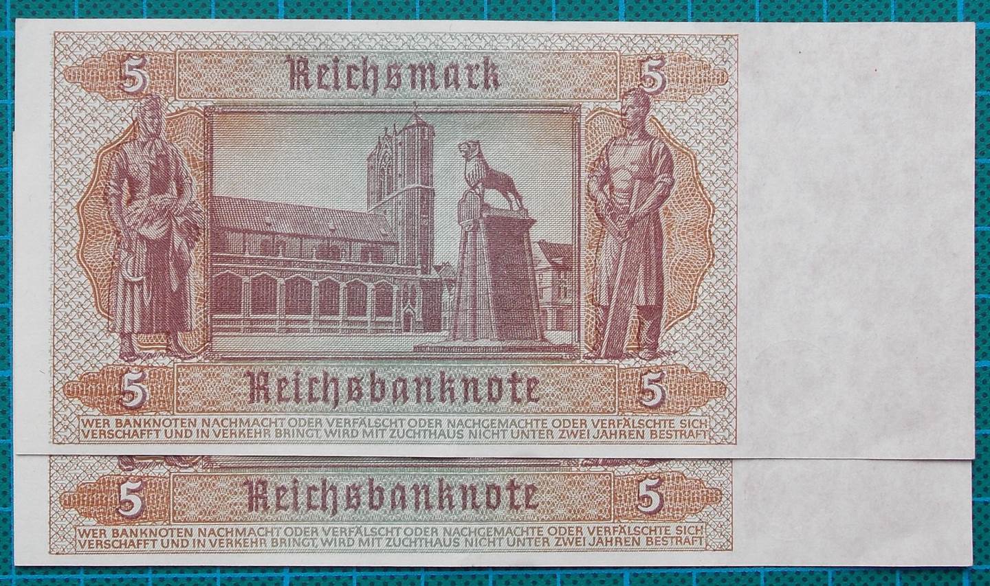 Issued just prior to the outbreak of hostilities in Europe they have somehow managed to stay together through all the ensuing turbulent years. These notes both bear the stamp of the Third Reich.