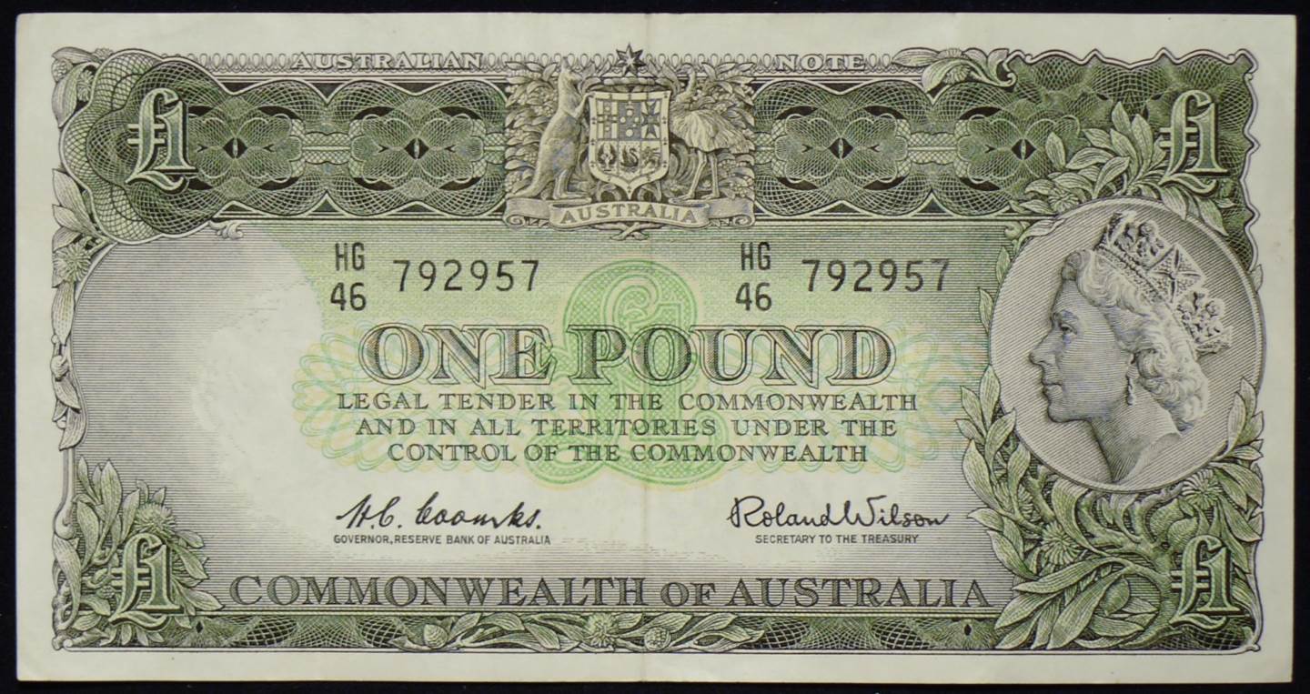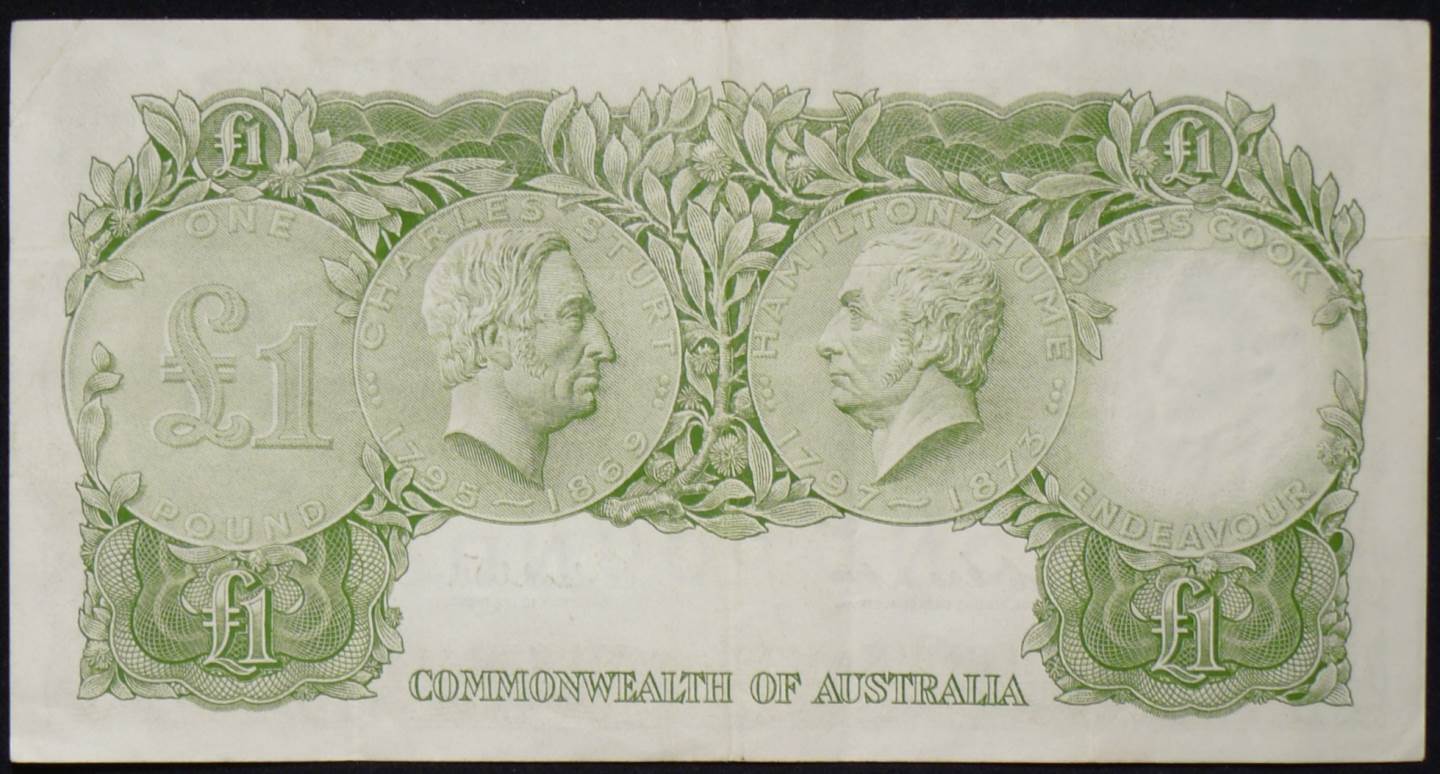 Watermark:Captain Cook in left hand oval . The word ’One Pound’ also sits behind the signatories.
