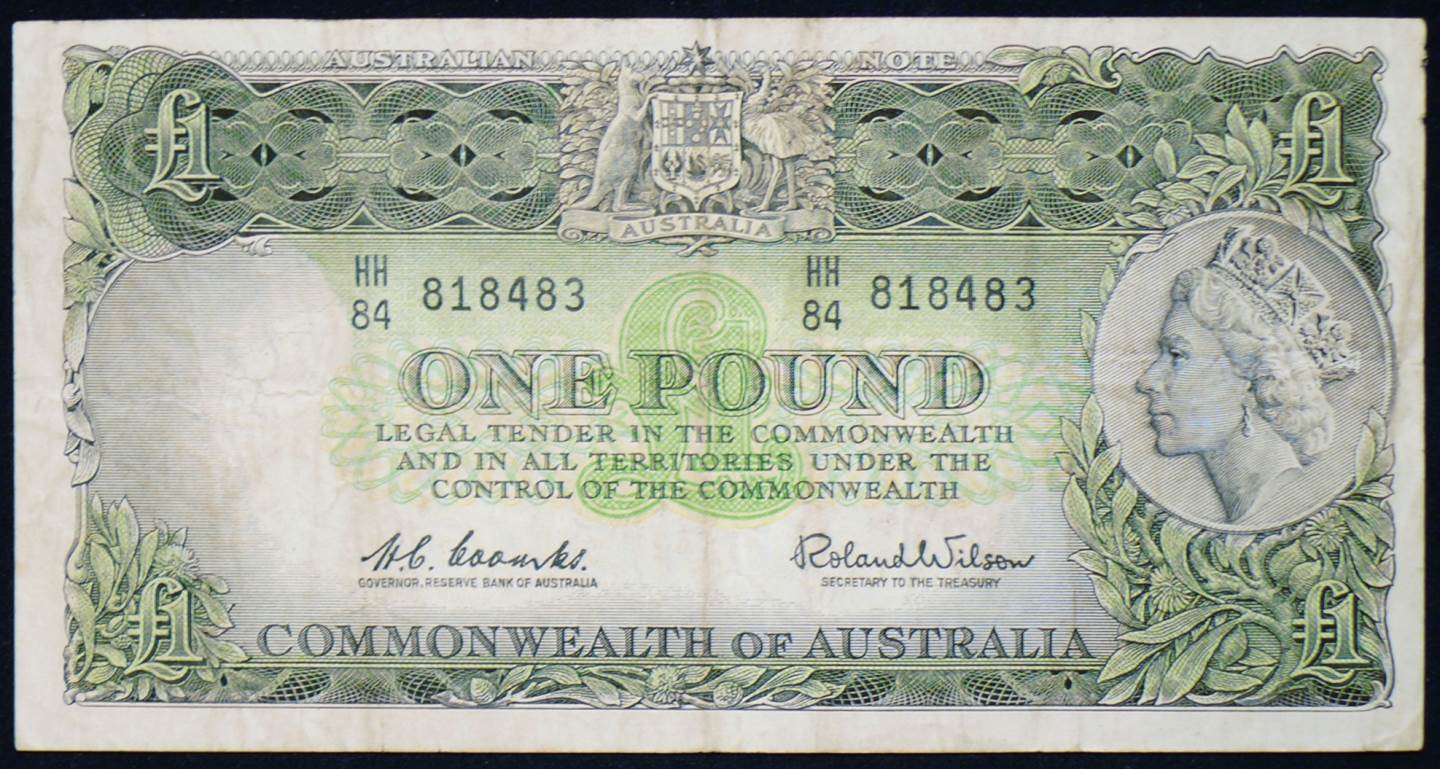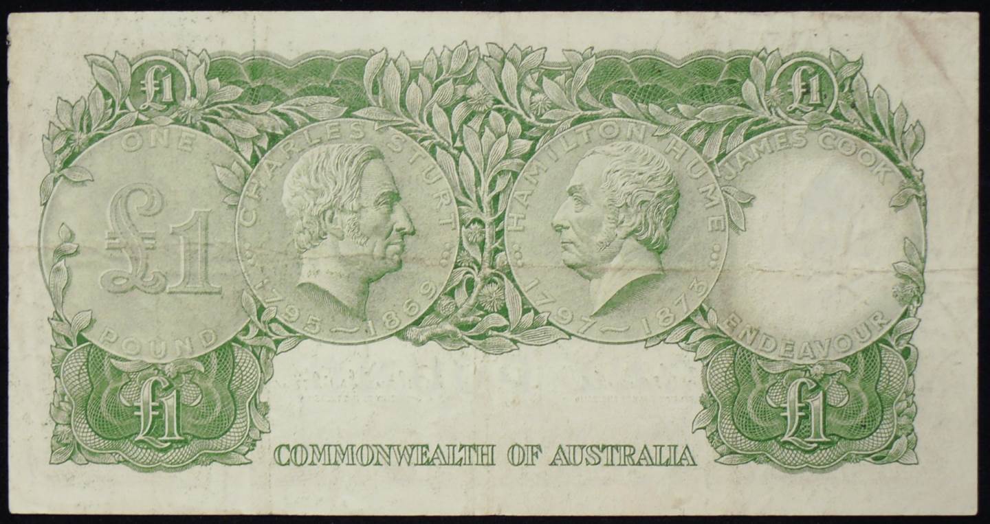 Watermark:Captain Cook in left hand oval . The word ’One Pound’ also sits behind the signatories.