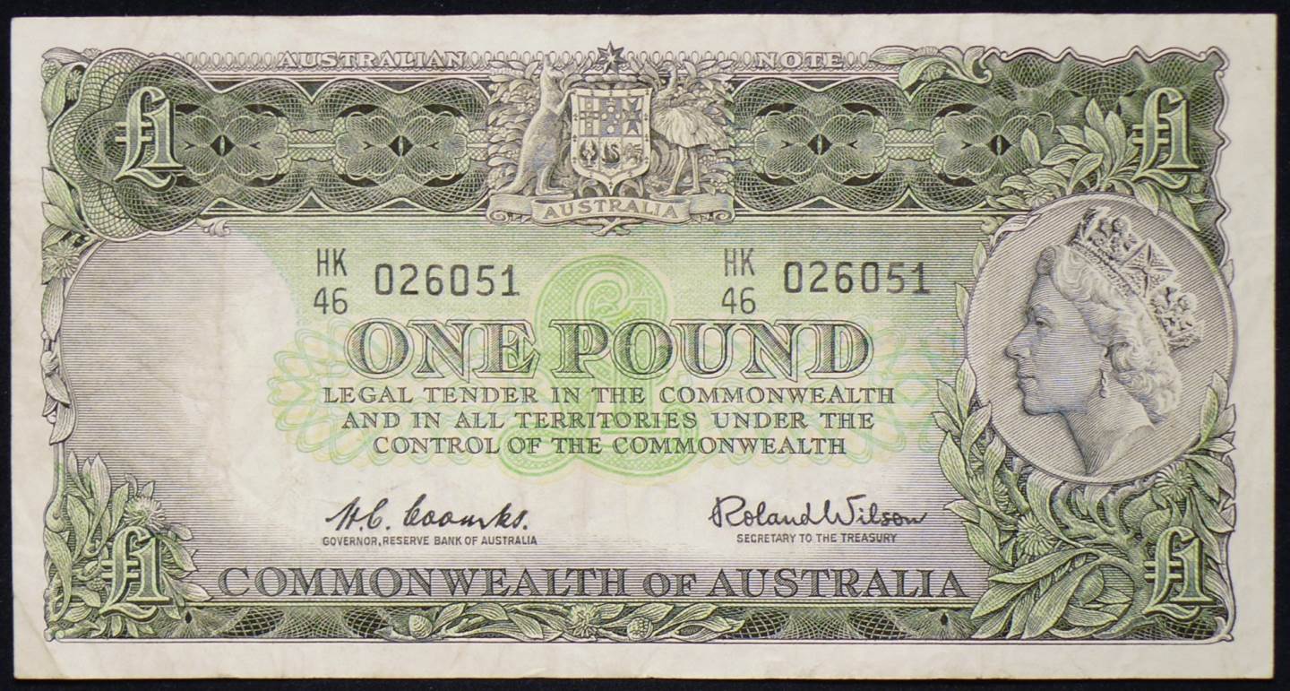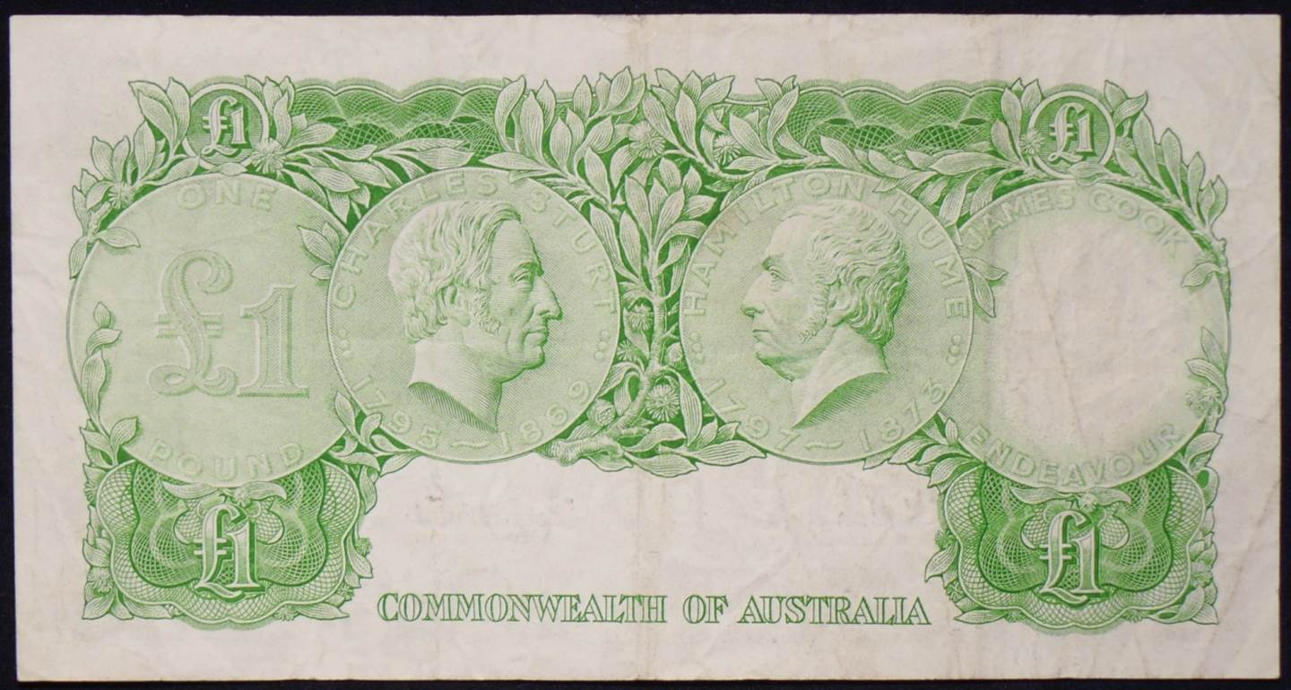 Watermark:Captain Cook in left hand oval . The word ’One Pound’ also sits behind the signatories.