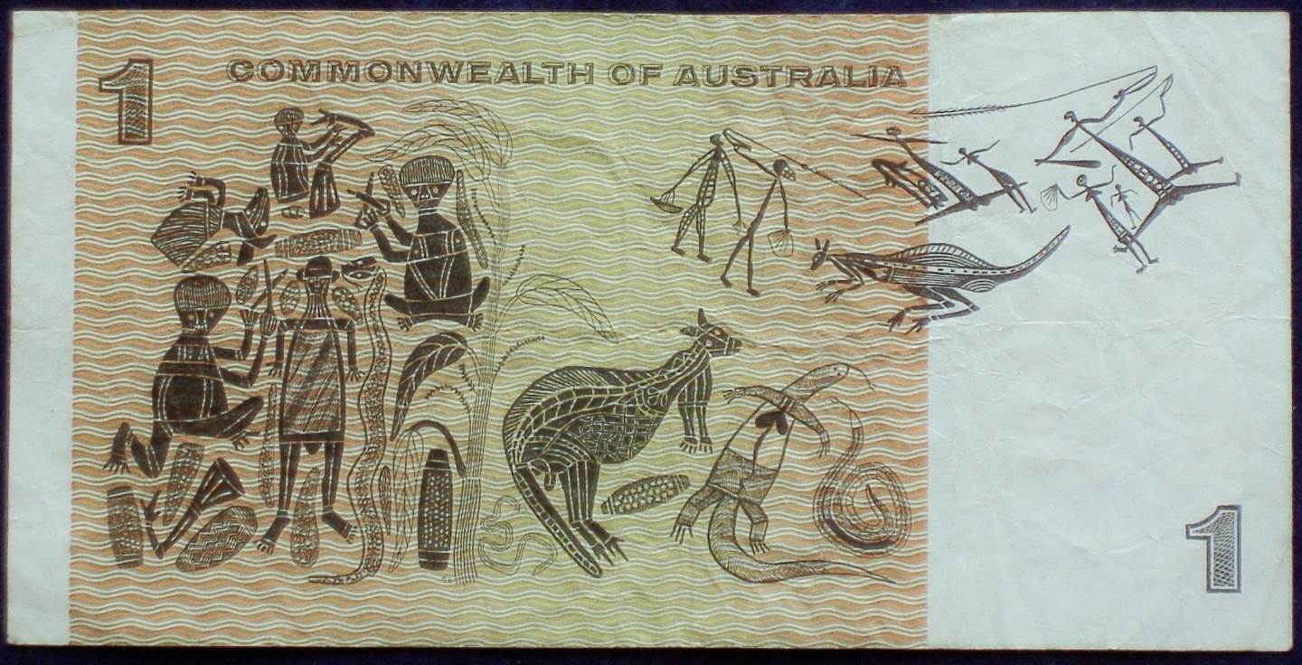 David Malangi (1927 – 27 June 1998) was an Indigenous Australian Yolngu artist from the Northern Territory. The Yolngu (or Yol?u) are an Indigenous Australian people inhabiting north-eastern Arnhem Land in the Northern Territory of Australia. Yolngu vfwvrally means “person” in the language spoken by the people. One of the most well known bark painters from Arnhem Land. The reproduction of one of his designs was produced on the Australian one dollar note in 1966. (originally without his knowledge – when he became aware of this, he was given financial compensation). The payment by the Reserve Bank of Australia to Malangi began issues of Aboriginal copyright in Australia. He was born at Mulanga, on the east bank of the Glyde River.