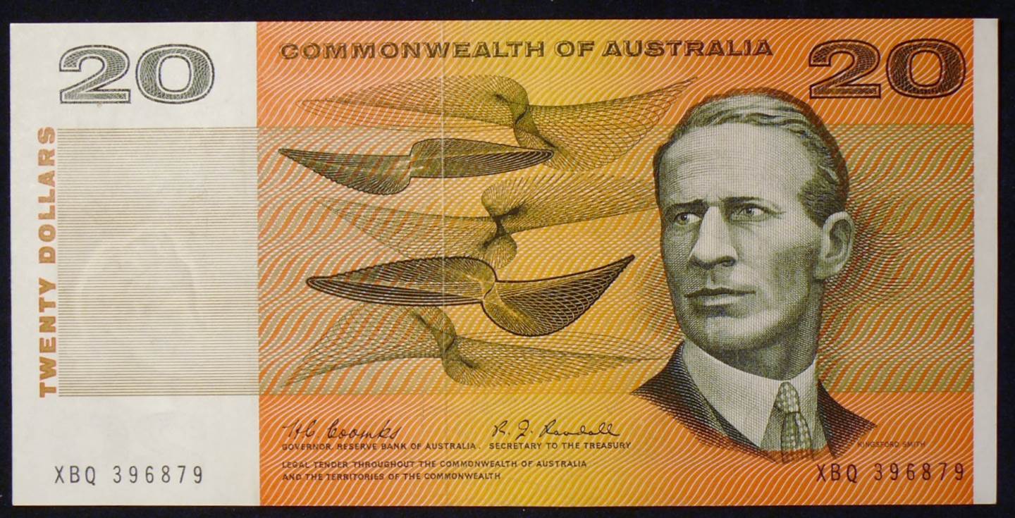 Obverse: Sir Charles Edward Kingsford Smith MC, AFC (9 February 1897 – 8 November 1935), often called Charles Kingsford Smith, or by his nickname Smithy, was a well-known early Australian aviator. In 1928, he made the first trans-Pacific flight from the United States to Australia. He also made the first non-stop crossing of the Australian mainland, the first flights between Australia and New Zealand, and the first eastward Pacific crossing from Australia to the United States. He also made a flight from Australia to London, and set a new record of 10.5 days.