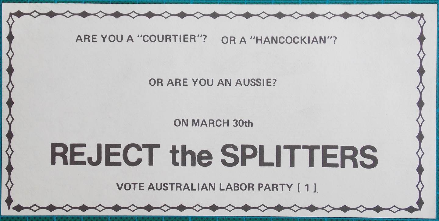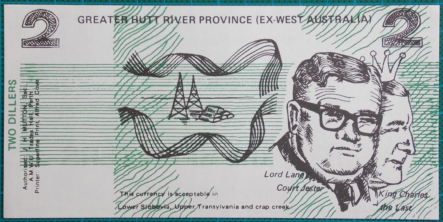 These election money notes were handed out at the time of the Whitlam Governments election campaign in 1974 asking people to go against the claim for a independent sovereign state within our borders and to not support Prince Leonard or Lang Hancock.