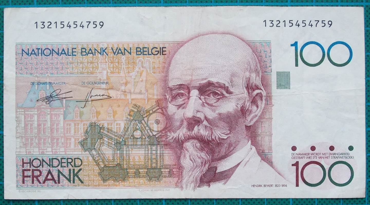 Here is a great little 100 Franc banknote from Belgium featuring the portrait of Hendrik Beyaert the architect.