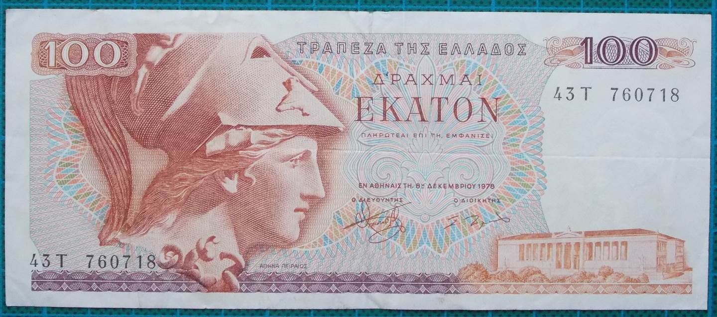 On offer here is a middle grade example of a 1978 100 Drachmas currency banknote from Greece.