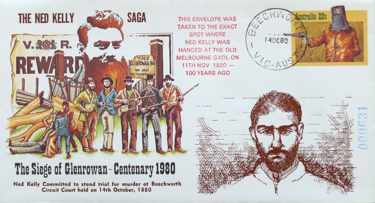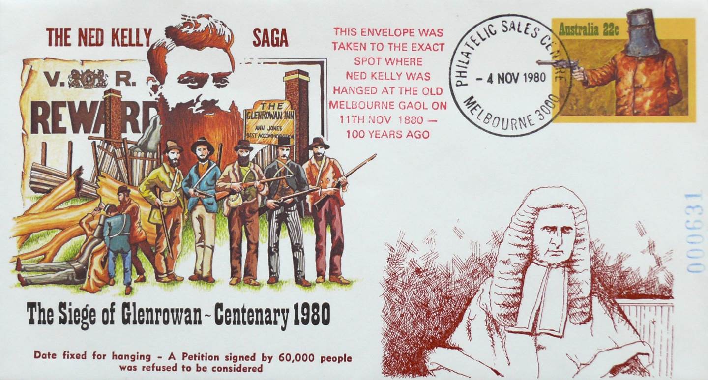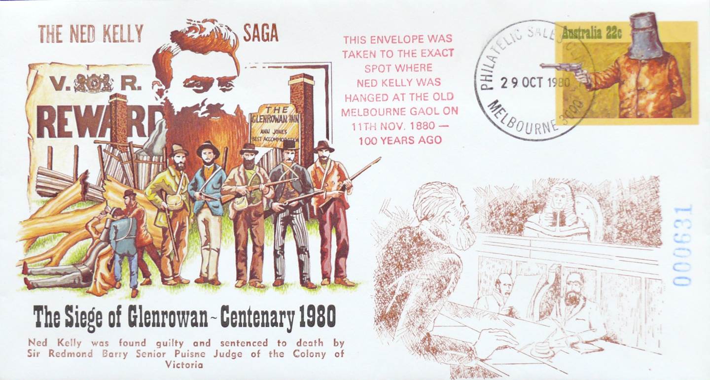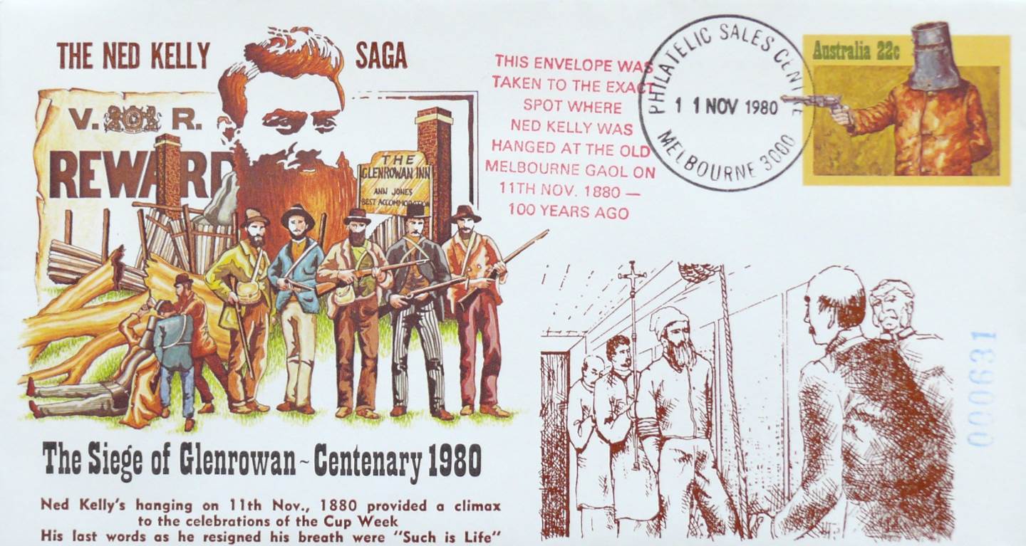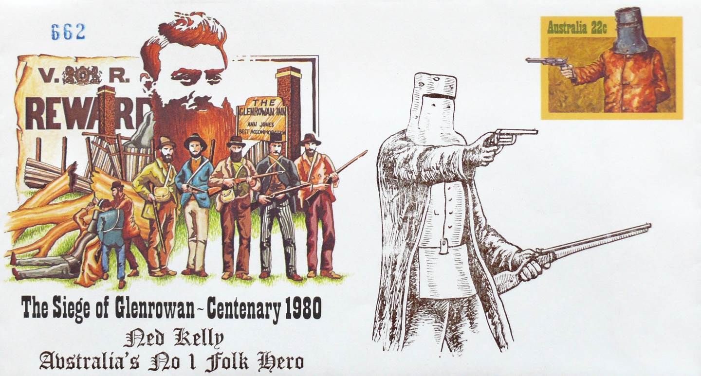 Australia Post – Ned Kelly Centenary – Full Set of 10 Comemorative Envelopes – 1980 Australia Post produced a stamp/envelope set The Siege Of Glenrowan – Centenary 1980 to mark the capture of Kelly 100 years before.