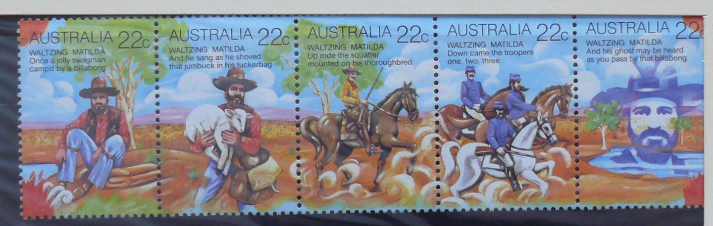 Australian Folklore Waltzing Matilda strip of 5 –Â SG 742a –Â stamps.