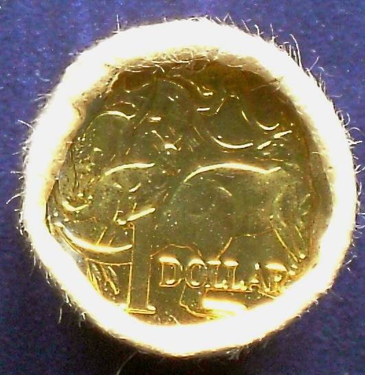 The Australian one dollar coin was first issued in 1984 to replace the one dollar note then in circulation, this coin seems to be the most circulated denomination in Australia. All three portraits of the Queen have been minted, the 1984 head of Queen Elizabeth II by Arnold Machin; between 1985 and 1998 the head by Raphael Maklouf; and since 1999 the head by Ian Rank-Broadley. Inscription of AUSTRALIA on the right hand side and ELIZABETH II on the left hand side.Coins of the Australian dollar.
