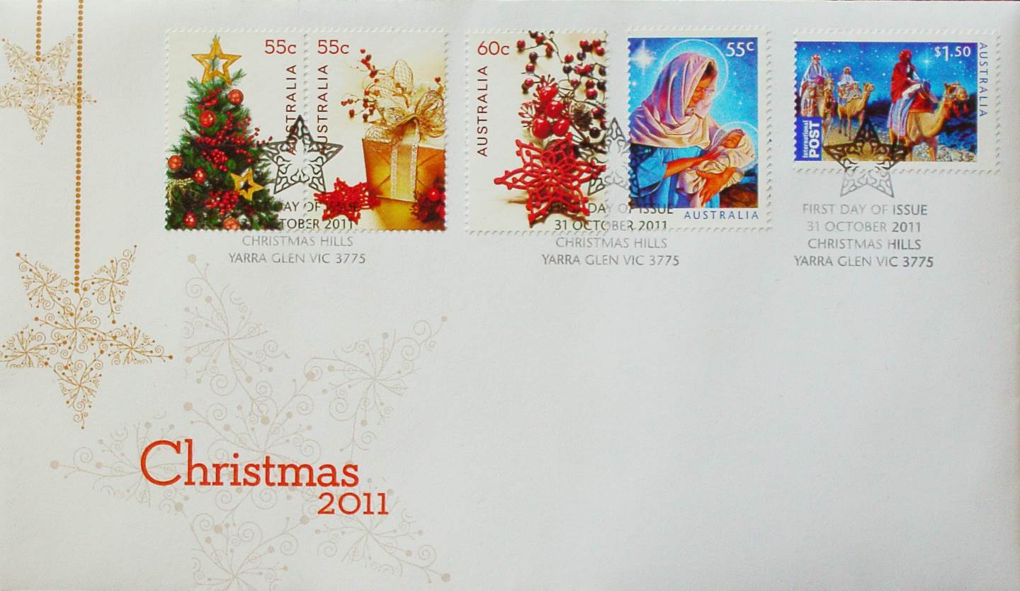 The usual usage of Christmas stamps is to quickly apply them to a stack of Christmas cards to go out. In the age of email, Christmas stamps may represent some individuals’ largest remaining use of stamps in a year, and it is not unusual to see “leftovers” appear on regular mail during the first months of the new year. In Australia where Christmas cards can be sent at a discount (currently 5c lower than the regular domestic rate, and up to 85c lower for international rates), these stamps will turn up on regular mail after Christmas with additional stamps to make up the correct rate.