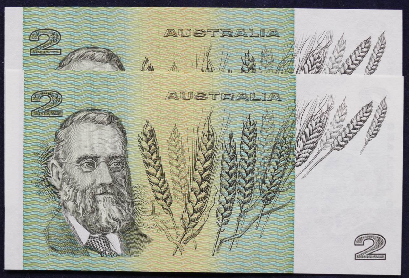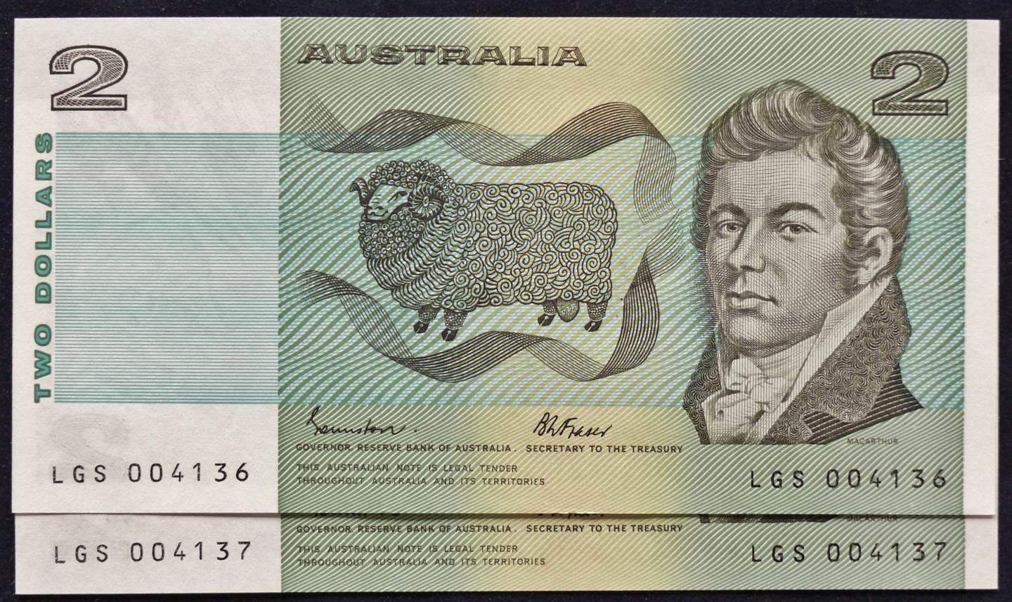 Here is a great little pair of Johnston / Fraser two dollar paper notes.