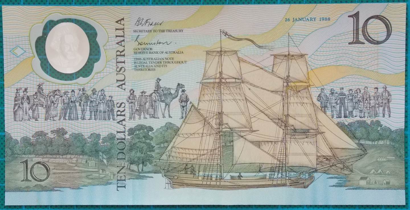 The worlds very first polymer banknote. Released in 1988 to celebrate the Bicentennary of Australia. This note had an extremely special featuresbuilt into it as security against forgery being a hologram of Captain James Cook.. It was a world first and makes these notes highly desirable as collectors items. Collectors value numerous variations of this note. due to initial production problems. There were 3 releases of this note due to initial technical difficulties with the production techniques.