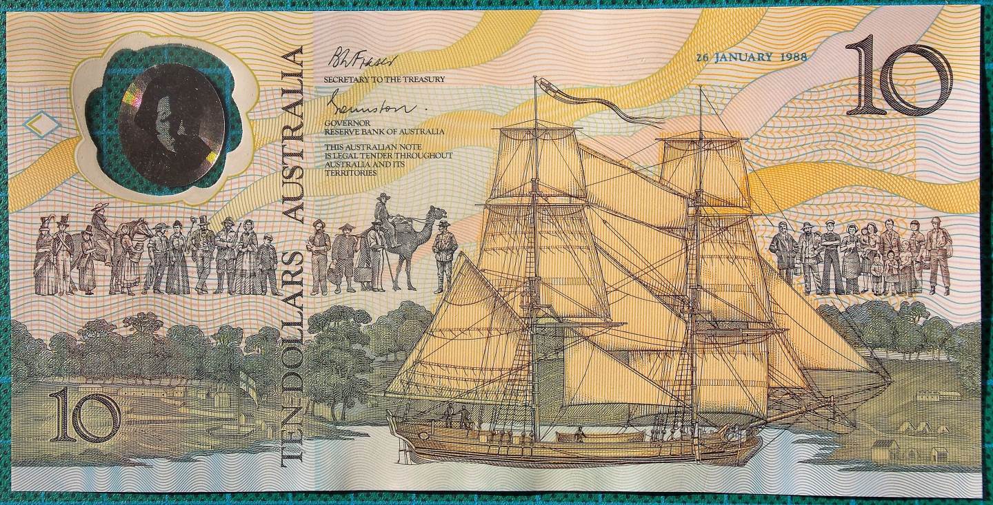 The worlds very first polymer banknote. Released in 1988 to celebrate the Bicentennary of Australia. This note had an extremely special featuresbuilt into it as security against forgery being a hologram of Captain James Cook.. It was a world first and makes these notes highly desirable as collectors items. Collectors value numerous variations of this note. due to initial production problems. There were 3 releases of this note due to initial technical difficulties with the production techniques.