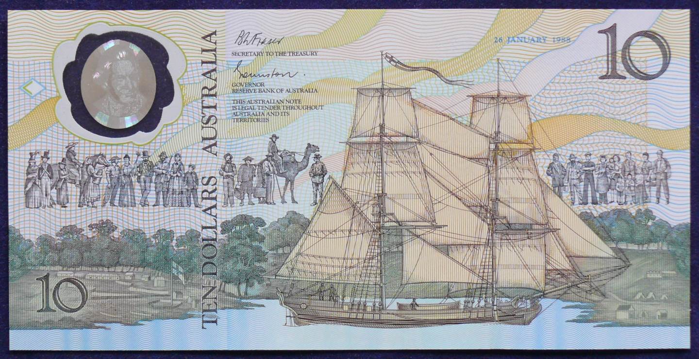 Design Details and Serial Number Sequence:The worlds very first polymer banknote. Released in 1988 to celebrate the Bicentennary of Australia. This note had an extremely special features built into it as security against forgery being a hologram of Captain James Cook. It was a world first and makes these notes highly desirable as collectors items. Collectors value numerous variations of this note due to initial production problems.There were 3 releases of this note due to initial technical difficulties with the production techniques.