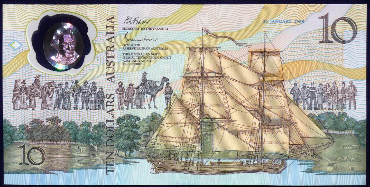 The worlds very first polymer banknote. Released in 1988 to celebrate the Bicentennary of Australia. This note had an extremely special featuresbuilt into it as security against forgery being a hologram of Captain James Cook.. It was a world first and makes these notes highly desirable as collectors items. Collectors value numerous variations of this note. due to initial production problems.There were 3 releases of this note due to initial technical difficulties with the production techniques.