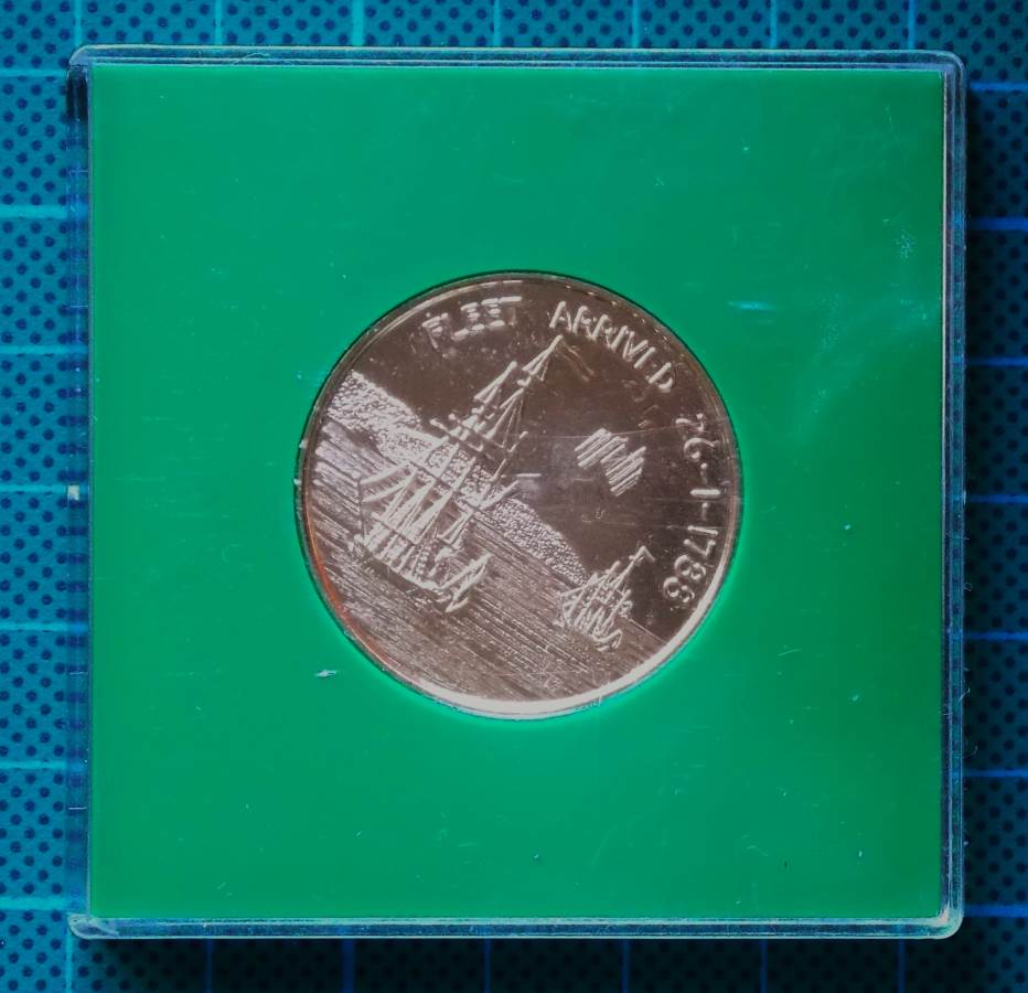 This gold anodized aluminum medallion was issued by the The Australian Bicentennial Authority and has its official logo on the cover.