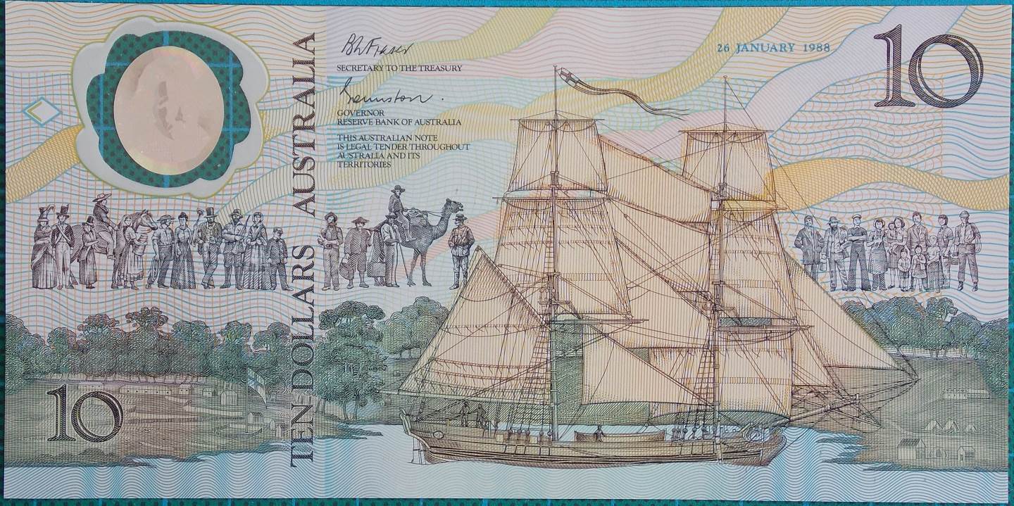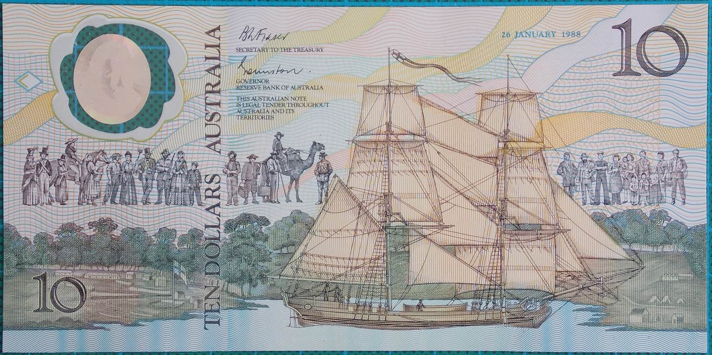 The worlds very first polymer banknote. Released in 1988 to celebrate the Bicentennary of Australia. This note had an extremely special featuresbuilt into it as security against forgery being a hologram of Captain James Cook.. It was a world first and makes these notes highly desirable as collectors items. Collectors value numerous variations of this note. due to initial production problems.
