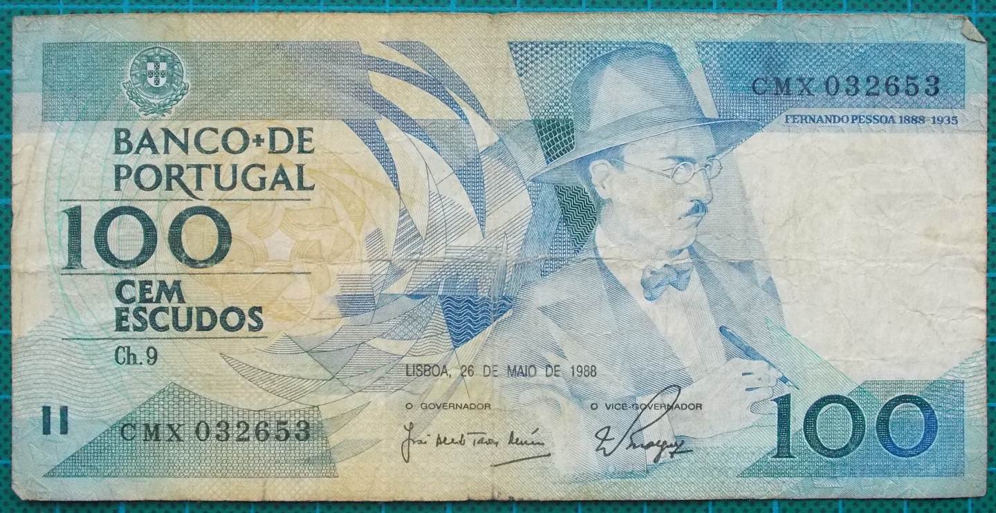 This is a well circulated example of the 1988 100 Escudos banknote from Portugal.