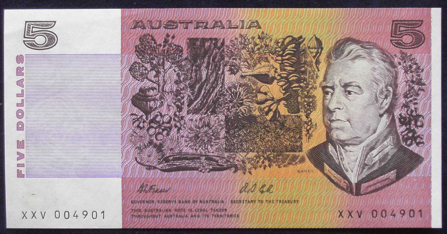 With the 1991 $5 Fraser & Cole Paper Banknote including XXV Roman Numeral as 25th year prefix on the final $5 Paper Notes Issued.