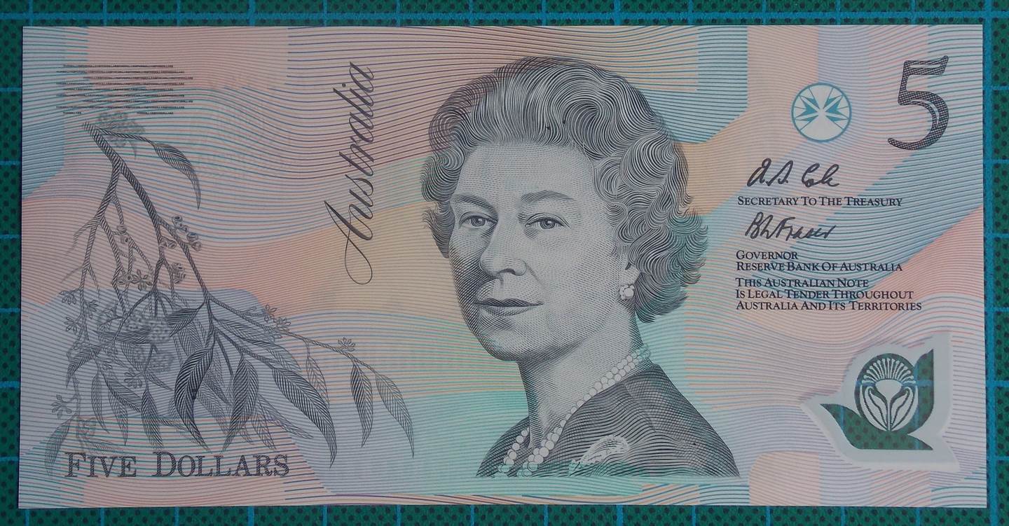 1992 Australia Five Dollars Polymer AA99-Pale Green Serial