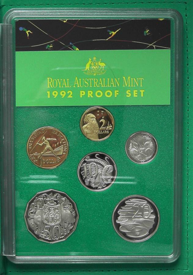 The 1992 coin set features the $1 coin with the javelin thrower. This coin was never released for general circulation and was only available as a part of a set.
