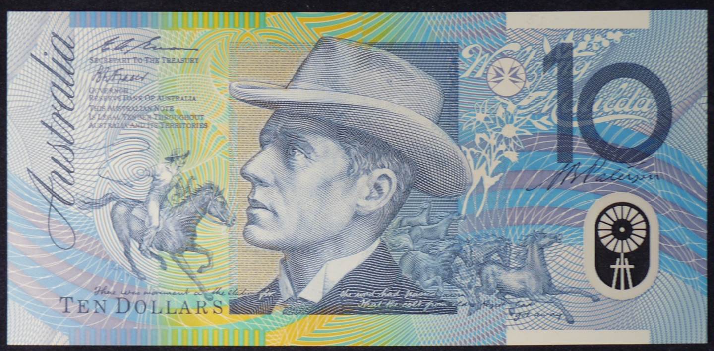 5. On one side of the note, verse from the poem The Man from Snowy River are microprinted in the area surrounding Banjo Paterson’s portrait and can be seen with the aid of a magnifying glass. Between each stanza of the poem are the words TEN DOLLARS.