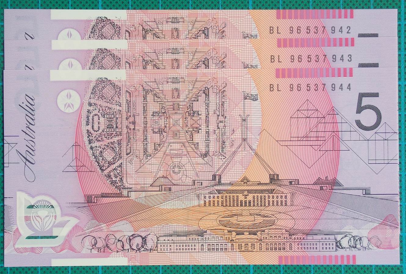 These Fraser Evans 1996 Five Dollar notes are some of the more valuable polymer notes of the entire first 5 years.