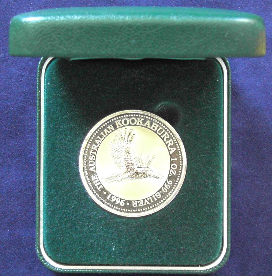 1996 one ounce Kookaburra coin in its original packaging.