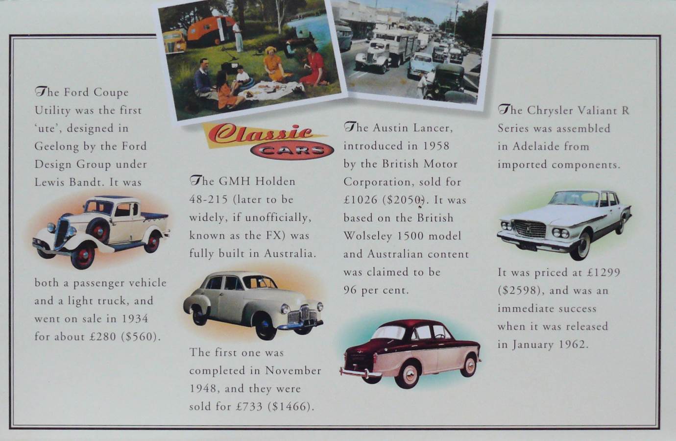 1997 Classic Cars block of 4 stamps in Australia Post stamp folder