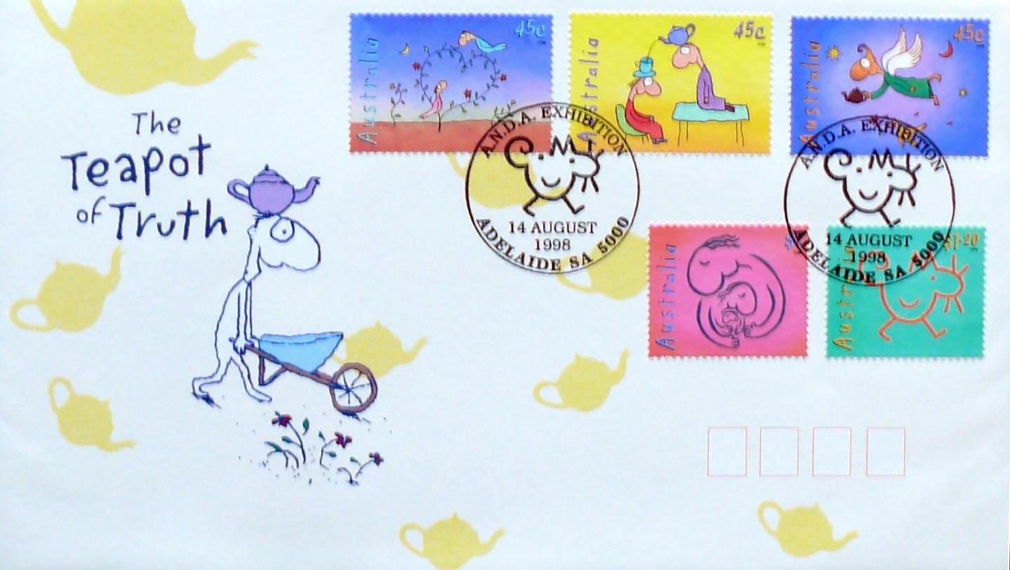Renowned cartoonist Michael Leunig is undoubtedly one of Australia’s endearing favorites. He is one of the very few Australians to be honored with the “National Trust Living Treasure” accolade in 1999. Celebrating Leunig’s fantastic power of capturing the essences of humanity, peace, love and hope, this envelope is one of five in a series honoring his foresight and uniquely Australian passion. Australian Post Office began in 1970 to produce first day covers featuring distinctive designs for each new stamp issue and with the stamps cancelled by special ‘first day of issue’ postmarks. These official first day covers form a sizeable and very attractive collection for Australian stamp collectors. First day covers are reasonably common however not so with this offer. These official ANDA release First Day Covers are now becoming very scarce indeed. A philatelic delight from the Leunig Collectible Stamps issue.