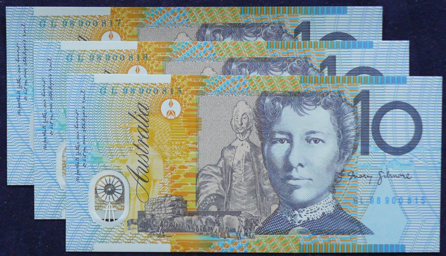 1998 Australia Ten Dollars Polymer X 3 – GL 98 – Last Prefix