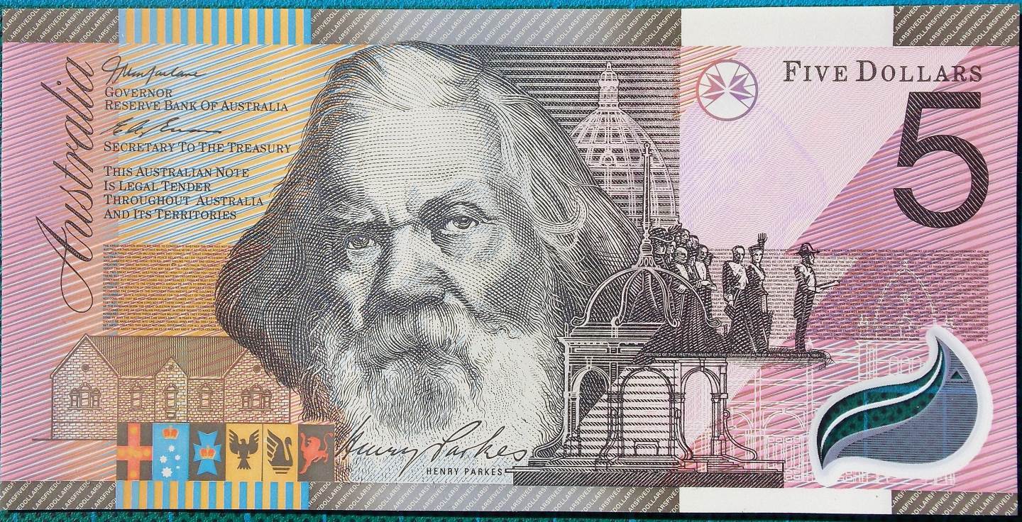 Parkes and Spence, two people whose endeavors have changed the face of the Australian nation sit back to back on this Five Dollar special tender banknote.