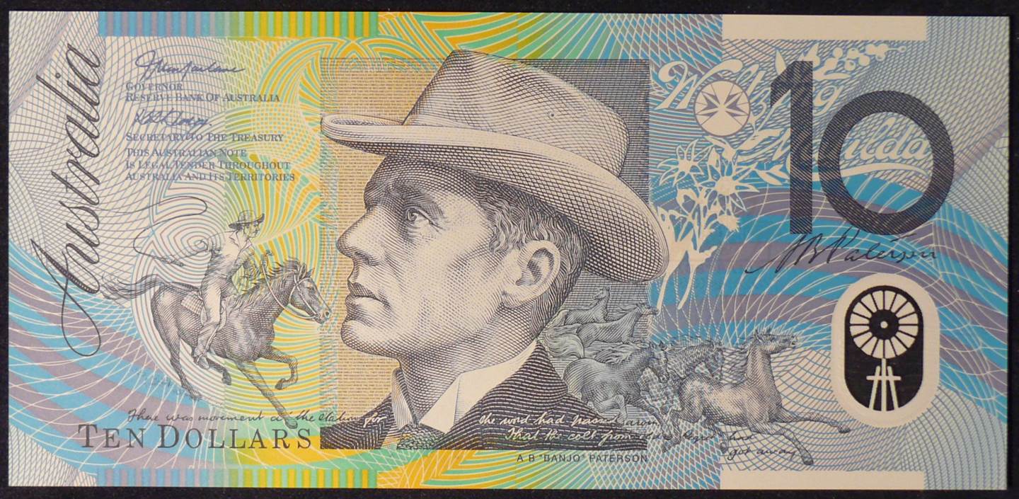 5. On one side of the note, verse from the poem The Man from Snowy River are microprinted in the area surrounding Banjo Paterson’s portrait and can be seen with the aid of a magnifying glass. Between each stanza of the poem are the words TEN DOLLARS.